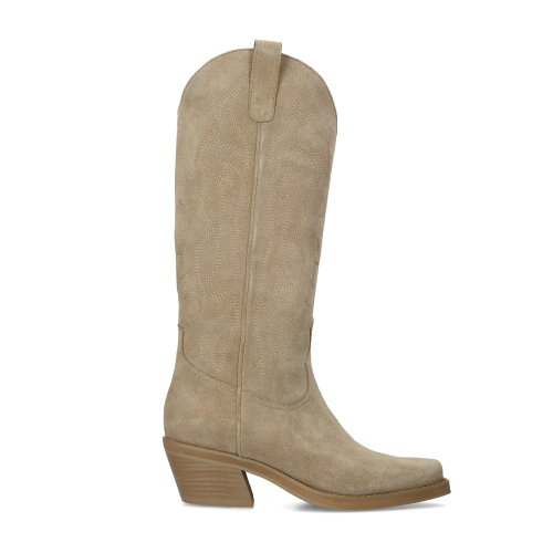 Hinweis: Es handelt sich bei diesem Artikel um eine Vorbestellung. Voraussichtliche Lieferzeit: Mitte Oktober. Diese beigefarbenen Veloursleder-Cowboystiefel der Marke Sacha haben einen 5 cm hohen Absatz und sind mit authentischen Stickerei-Details abgesetzt. Bei einem Modell in Größe 37 beträgt die Schafthöhe 30 cm und der Schaftumfang 38 cm. Die Außenseite der Schuhe ist aus Veloursleder, die Innenseite ist aus Leder gearbeitet.
