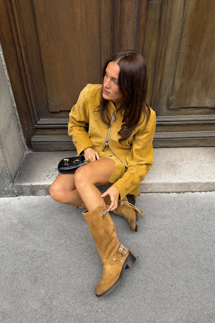 Braune Biker Boots aus Leder