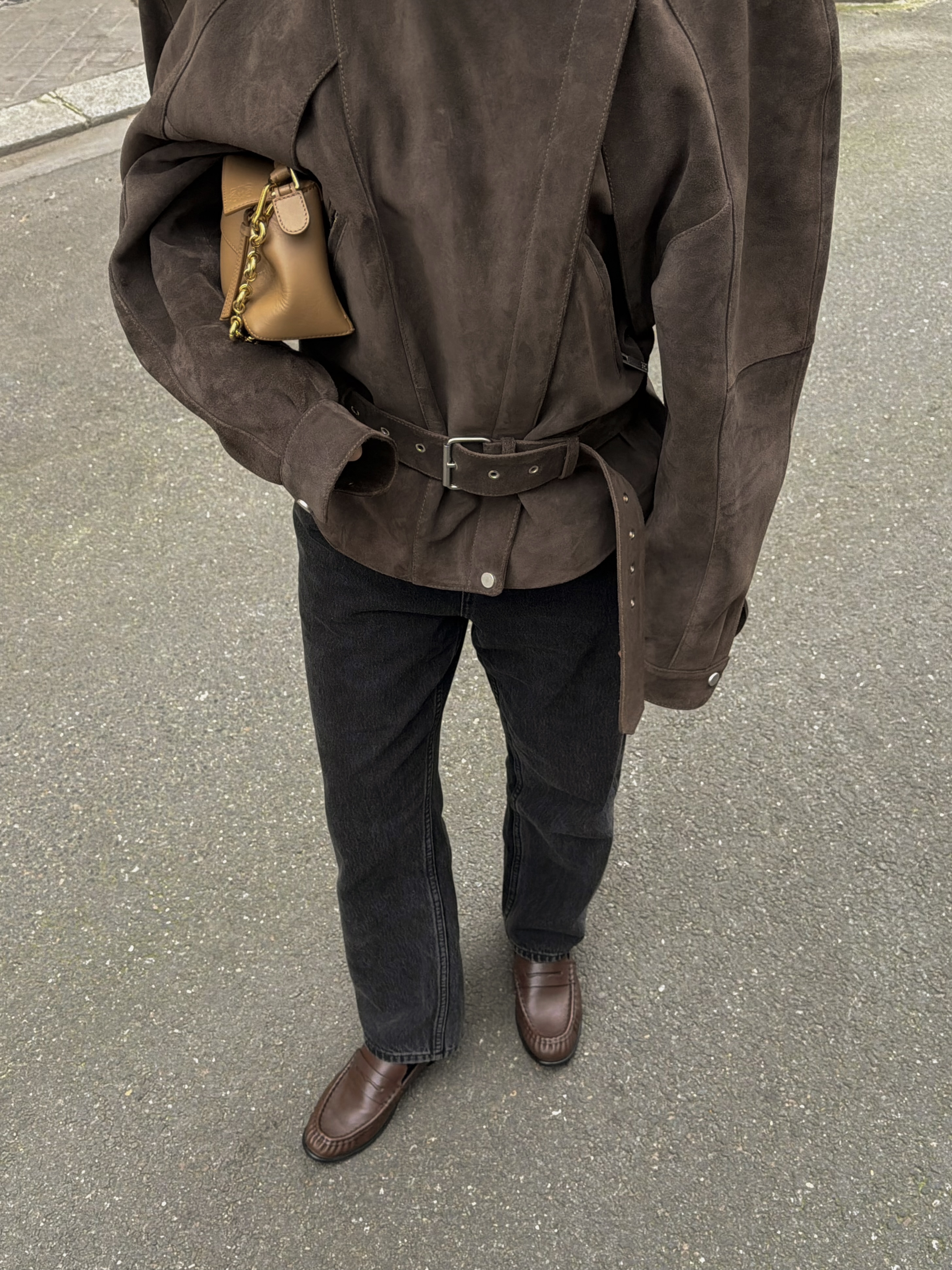 Dunkelbraune Veloursleder-Boots mit Umschlag