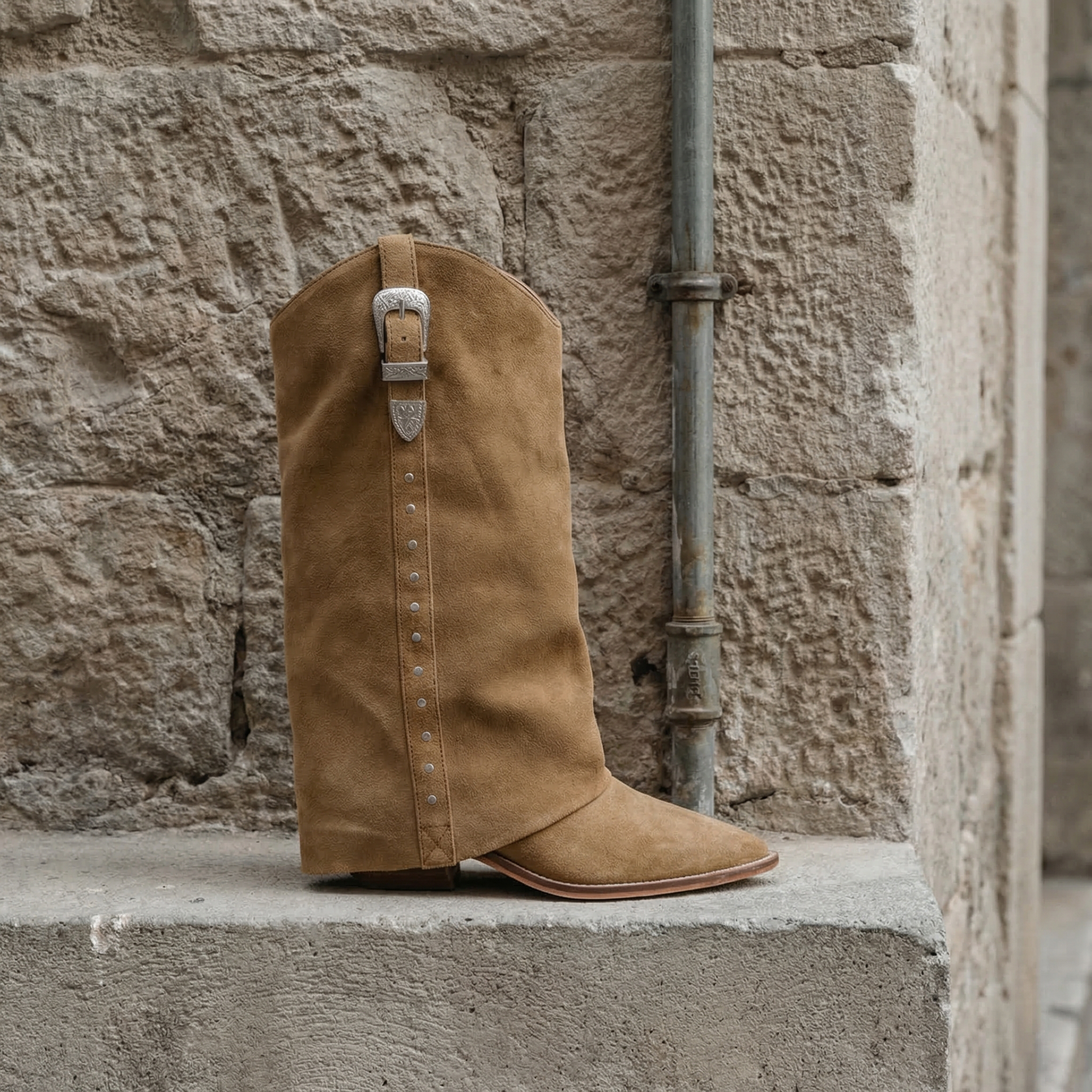 This boot stands out with its layered design and strong attitude. A statement piece that puts you center stage.