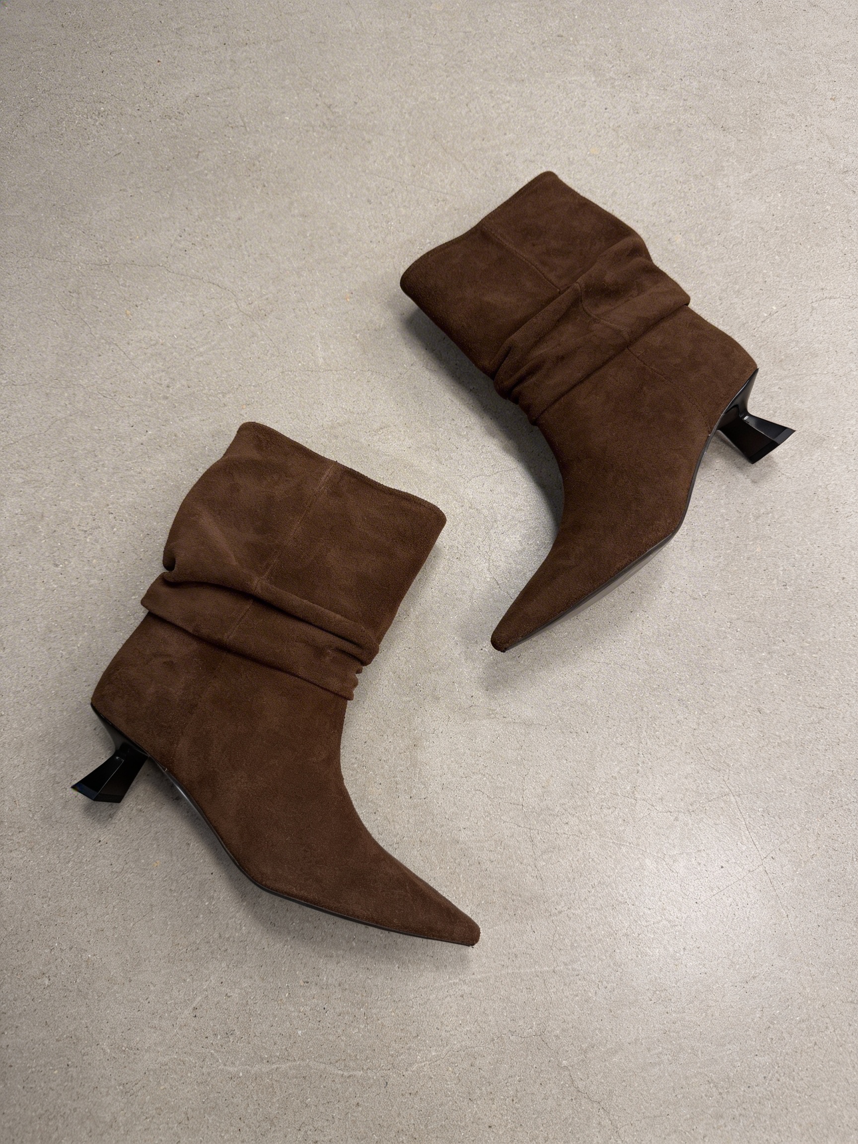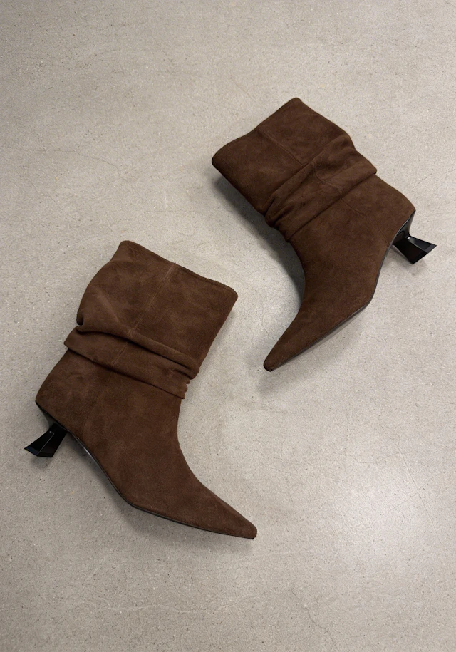 Slouchy Boots sind in dieser Saison alles andere als eindimensional. Von luxuriösem Veloursleder über Ankle Boots mit femininen Kitten Heels bis hin zu ausdrucksstarken Statement-Absätzen – genau diese Vielfalt macht den Trend so besonders. Auch kniehohe Modelle mit lässig gerafftem Schaft sind allgegenwärtig und prägen aktuell das Straßenbild. Hier sind unsere Favoriten des Moments, kuratiert nach Silhouette, Material und einer klaren Fashion-Forward-Attitude.