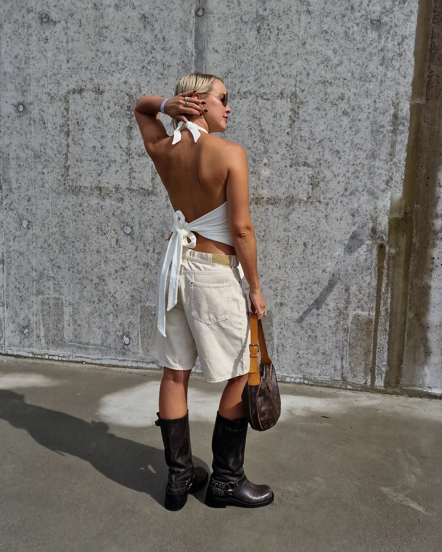 Auch mit Denim-Shorts und einem Halterneck-Top oder einer Oversized Tee kreierst du einen lässigen Festival-Look, der effortless wirkt und trotzdem durchdacht ist. Wenn du ein Statement setzen willst, style sie mit Leder-Pieces oder kombiniere mehrere Layered Accessories für diesen extra Cool-Girl-Vibe.