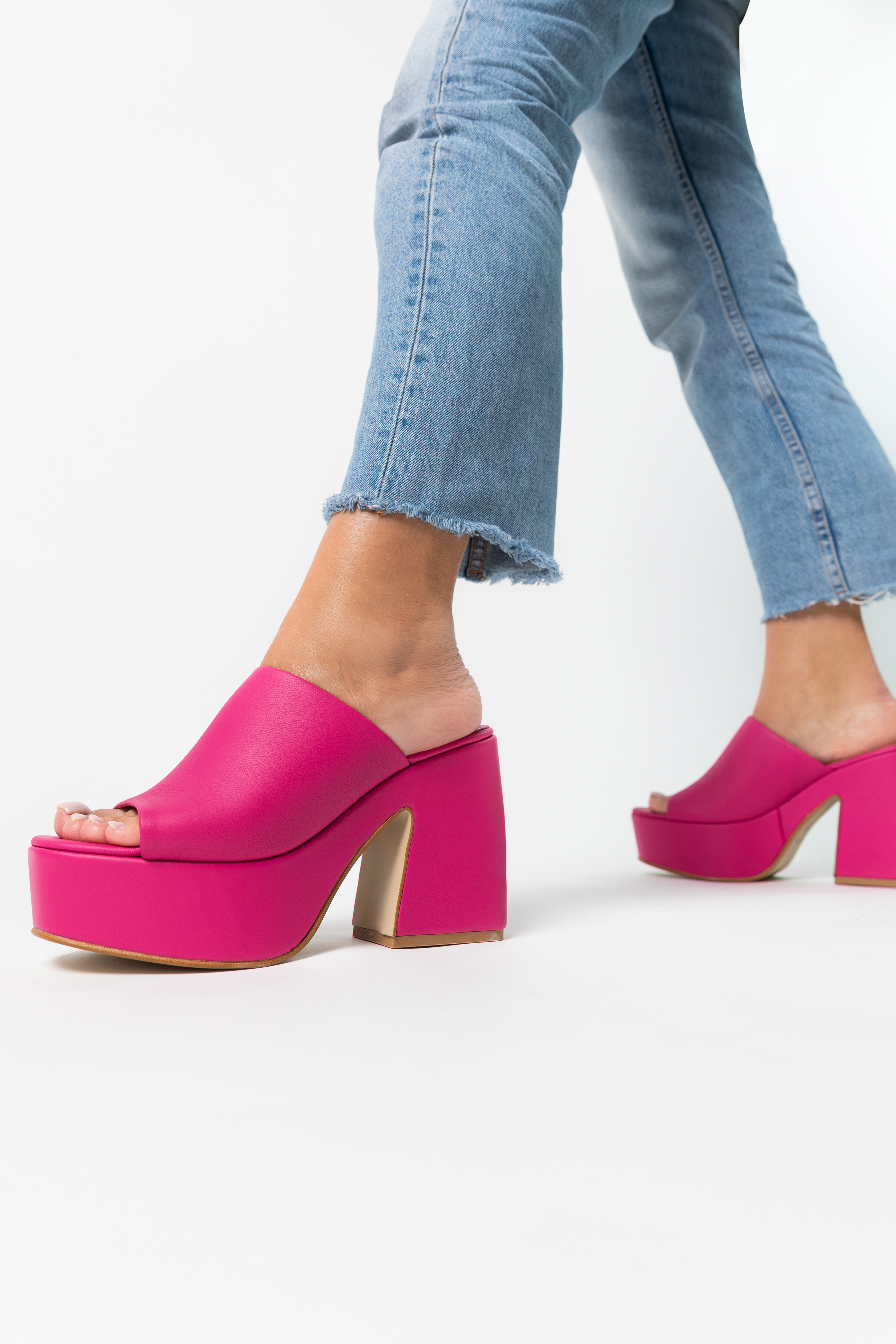 Sandaletten mit auffälligen Plateausohlen sind unsere unumstrittenen Favoriten für den kommenden Sommer. Die cheeky Shoes sind sophisticated, sexy und edgy. Ein schöner Blockabsatz, Trichterabsatz oder Plateauabsatz verleiht Sandaletten einen kultigen Y2K-Look. Entscheide dich zum Beispiel für unsere mintgrünen Plateau-Mules mit trendy Peeptoe und subtilem Krokomuster. Runde dein Statement-Outfit für das ultimative '00-Flair mit einer Schlaghose ab. Typische Y2K-Materialien, wie Satin, Veloursleder oder Samt, setzen dem Ganzen das modische i-Tüpfelchen auf. Kombiniere unsere orangefarbenen Plateausandaletten mit einem Denim-Korsett und einem Minirock aus Jeansstoff und dein Look ist absolut fashionable.