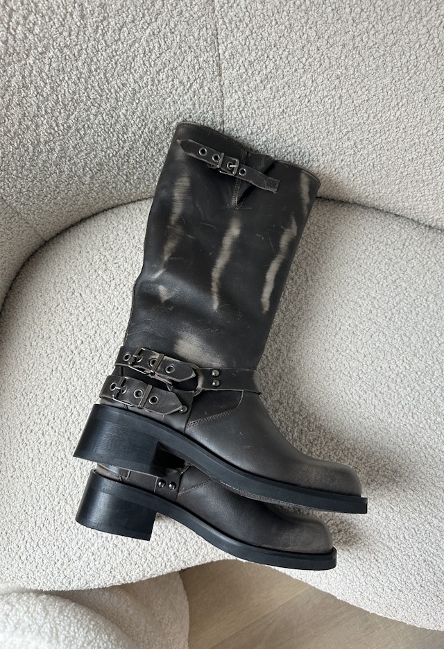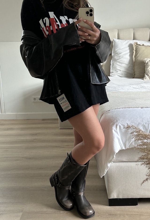Festival season has started! Lass dich von @fleurluttikhuis und ihrem Look mit unseren grauen Biker Boots in Used-Optik inspirieren. Kombiniere die Buckle Boots mit einem Oversize-Shirt, einer Vintage-Lederjacke und gib dem Outfit mit einer Statement-Sonnenbrille mit getönten Gläsern den Finishing Touch.