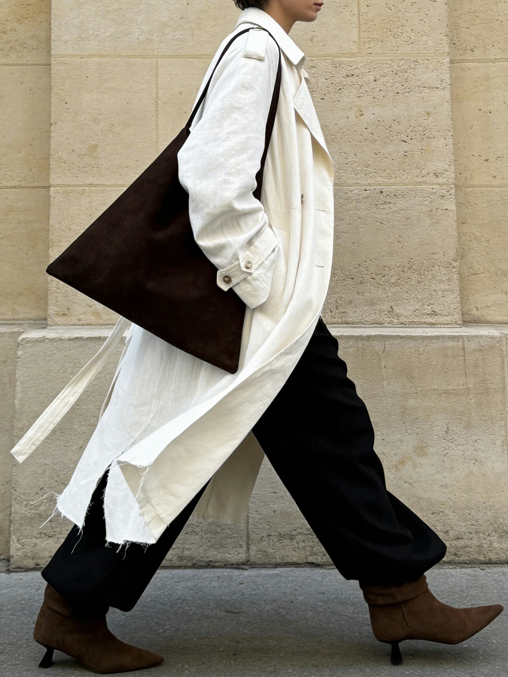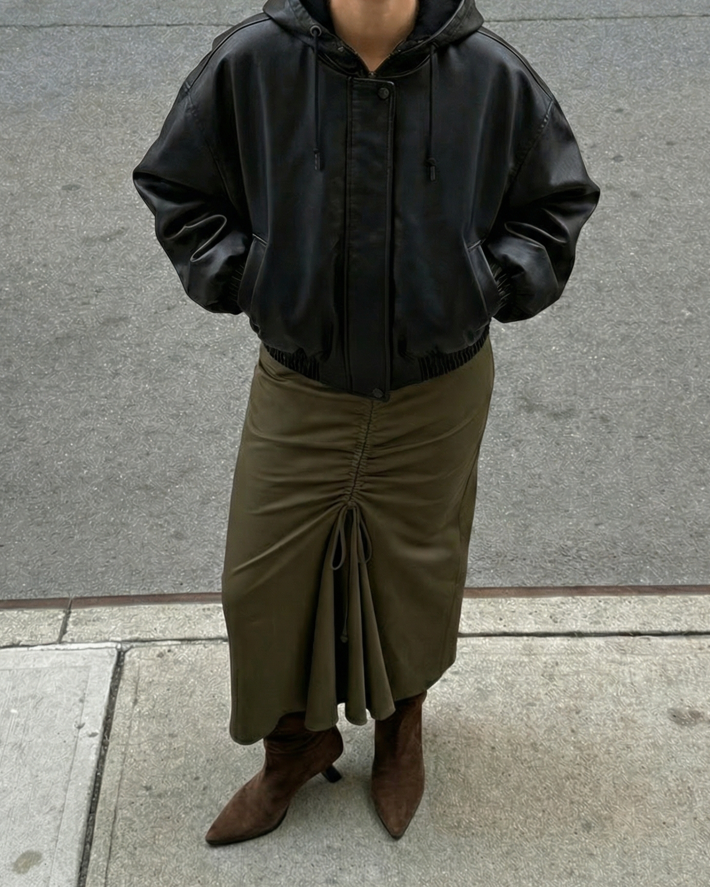 The ankle boot is reimagined with a softly ruched design that is relaxed in shape and confident in attitude. Soft suede enhances the fluid lines, creating a look that feels both nonchalant and refined. Style with tucked-in denim and a softly textured jacket.