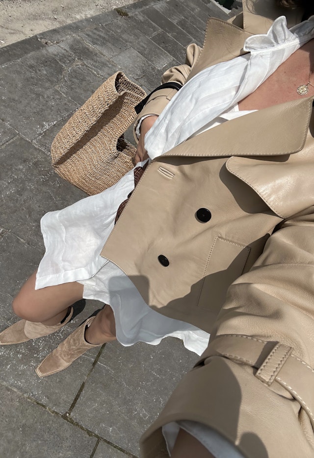 @máneshik ist bereit für den Sommer! Sie stylt unsere beigefarbenen Stiefeletten mit Umschlag am Schaft zu einem eleganten, soften Look in Beige und einer Basttasche in Flecht-Optik. Feeling the summer vibe!
